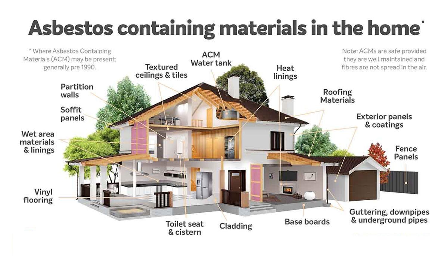 Widely used in New Zealand up until the 1980s, asbestos was used in a range of building materials. If your home was built before 1980, it's quite likely to have asbestos-containing materials (ACM) in some part of the building.